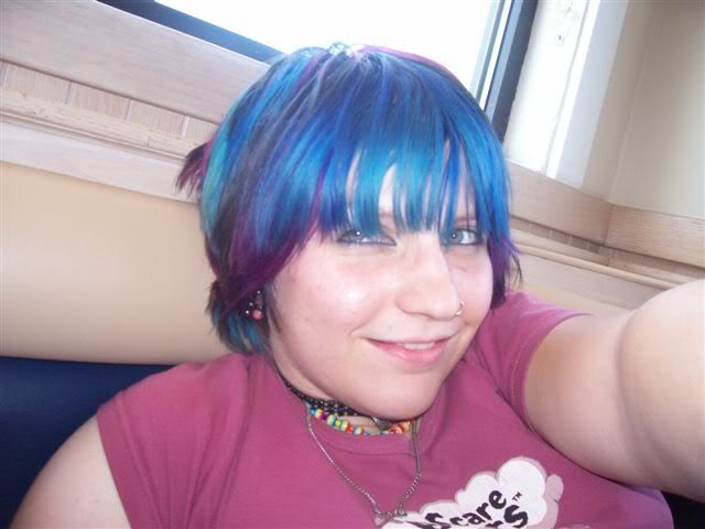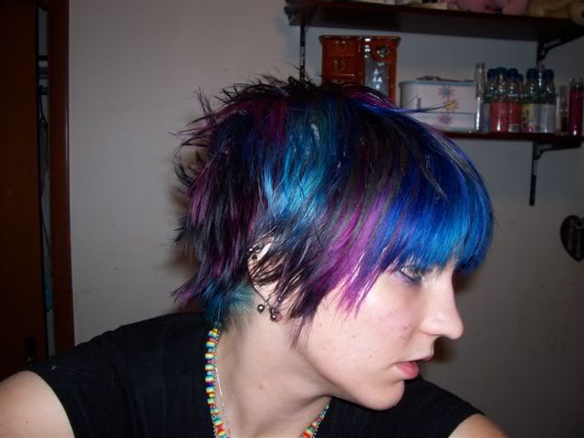 this is the day i coloured it (but before i cut it, so the ends were sorta faded looking because i didn't bother wasting dye on the ends i was about to cut off... do you two also cut your own hair?)