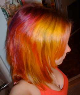 I wish i had pictures of my friends hair, she does THE BEST dying ever, like she can do crazy designs, she used to always do her friends hair. They always had pretty rainbow hair. I never go her to do mine though :( I've seriously never seen rainbow hair as pretty as hers, and it was longgg and she did hers herself! She moved to england though. sighhh. And on that special effects gallery site, the picture of my friend, she did her hair, but its only one color so you cant see how awesome it is.
