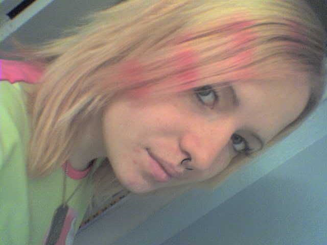 OH! i just found this picture. i had cut and coloured my hair and my friend's. she has the purple passion from raw and i have (faded but still decent looking) candy pink from raw: