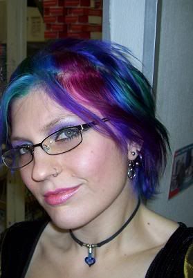 This seems like a fun thread. I'm so bored...I'm working a 12 hour shift right now with Security. taking a break. :). maybe Keri got her internet back. I was talking to her earlier and she lost the internet. Comcast is sucky sometimes. It kept going in and out all night last night. Bleh. But anyways, all the fun funky colors of everyones hair are cool.