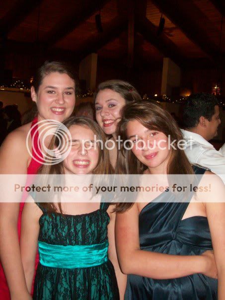 in the back: angie in red, me next to her. in the front: anissa on the left and andrea on the right.
