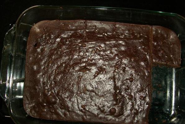 Mix syrup, salt, vanilla, cocoa/carob and oil. Then add the rest of the flour-water mixture. Mix well.