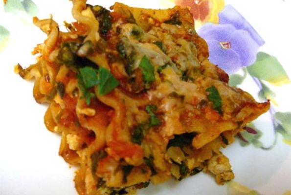 This was really good although I made some changes. I didn't have any cream cheese so I used some blended cashews instead and I used cilantro instead of parsley since it's what I had on hand. I didn't use any tomato sauce, just spaghetti sauce throughout and I didn't have herbed tofu so I used plain and just threw some Italian seasoning in. :) Very very yummy. Definitely making this again.