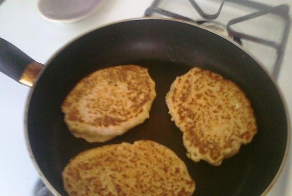 3. Add dry ingredients to cornmeal mixture. Stir in oil. Ladle batter onto a hot griddle or pan and flip when top is bubbly.