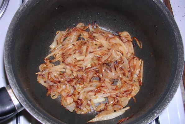 1) Brown the onion in oil over medium heat. This will take 10 minutes or so. Stir every minute to avoid burning the onion. This is where the sweet flavor comes from.