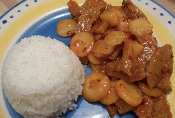2. Add sweet and sour sauce, water chestnuts, and pineapple chunks. Stir until the mixture is hot and evenly coated.