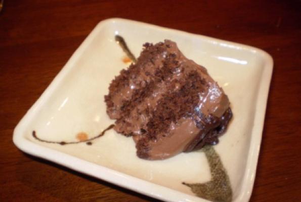 Here's what I changed: Instead of three layers, I made two using 9" round baking pans. Instead of the coffee I used a few tbs of Silk Soy Creamer and the rest water. I made a PB frosting for only in the middle of the two layers using Silk Soy creamer, powdered sugar, and PB. For the outside frosting I used everything but the espresso and I used half tofu, half PB instead of the 2 pckgs of tofu. The tofu was soft, not medium because my grocer only carries soft and firm. Also I don't own a food processor, so I tried making the Chocolate-PB icing with a electronic beater... it didn't turn out well. THen I put it in the blender and it was perrrrrrfect!