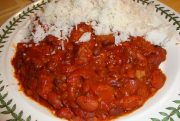 NOTE: This is very quick to assemble, just takes a long time to cook. It's good for cold weather when you're feeding your family or having company over- also a good recipe for reluctant vegans, if a bit "unusual" tasting compared to standard chili.