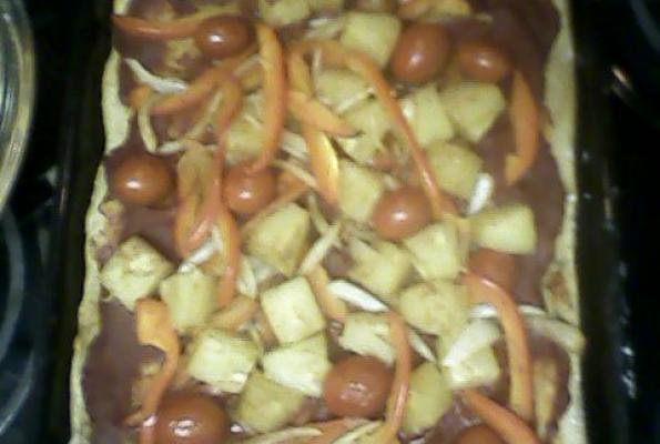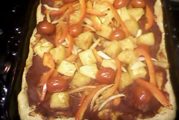 Source of recipe: This is my first recipe I've submitted so I'm sorry if it seems complicated! Enjoy! I used to make a famous pineapple chicken over white rice that my mom made when I was a kid. Once I became vegan, I wanted to try it on a pizza, minus the chicken.
