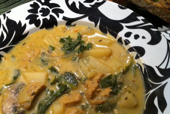 This is a vegetarianized version of Olive Garden's a sausage and potato soup.