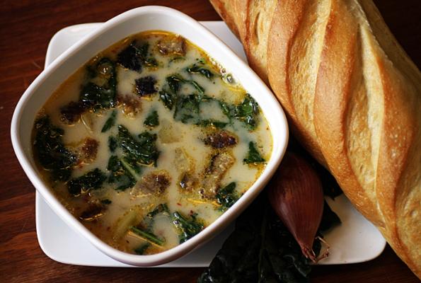 You should have seen the look on my boyfriend's face when he finished his bowl of soup (inhaled it, in fact). PRICELESS. It was SO good, and as the previous reviewer noted, it tastes quite rich but feels really healthy and light. I cooked it at my boyfriend's place, and he doesn't stock any spices or herbs, so I felt it was slightly lacking in that department. I used GimmeLean sausage because that's all my grocery store had, but the Tofurky italian sausage would have been way better. Regardless, it was awesome and will definitely be made again and again!!